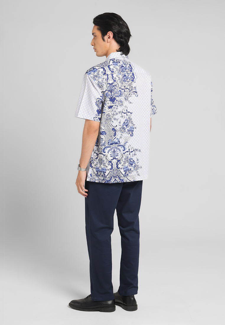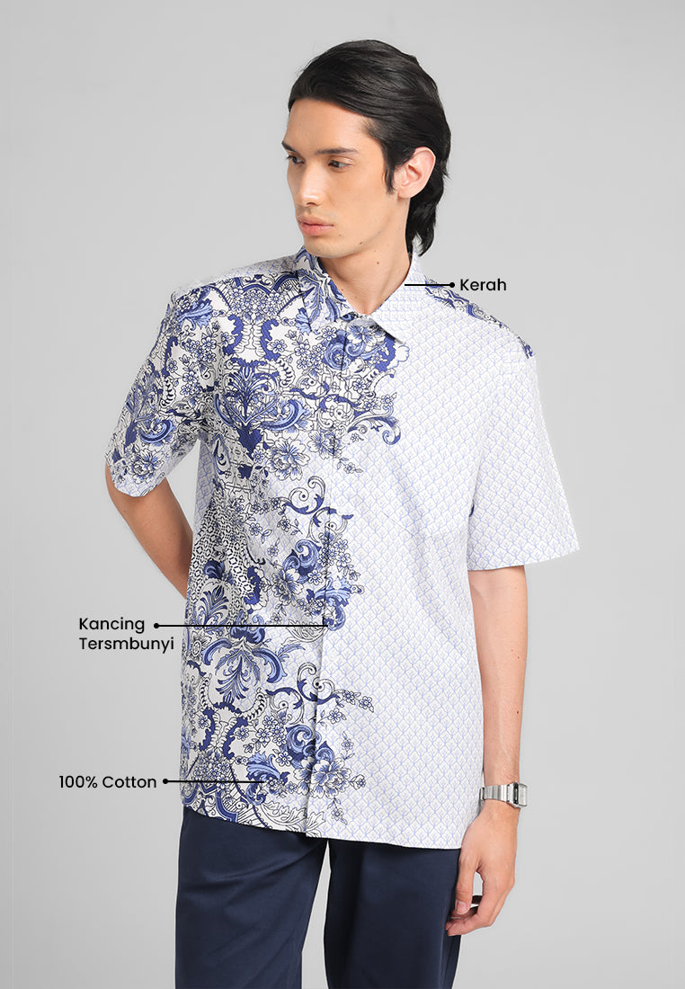 Kemeja motif oriental bernuansa biru putih yang cocok dipakai saat Chinese New Year. Dibuat dari bahan Dobby Print 100% Cotton yang adem dan nyaman, dengan potongan comfort fit yang rapi tapi tetap santai.