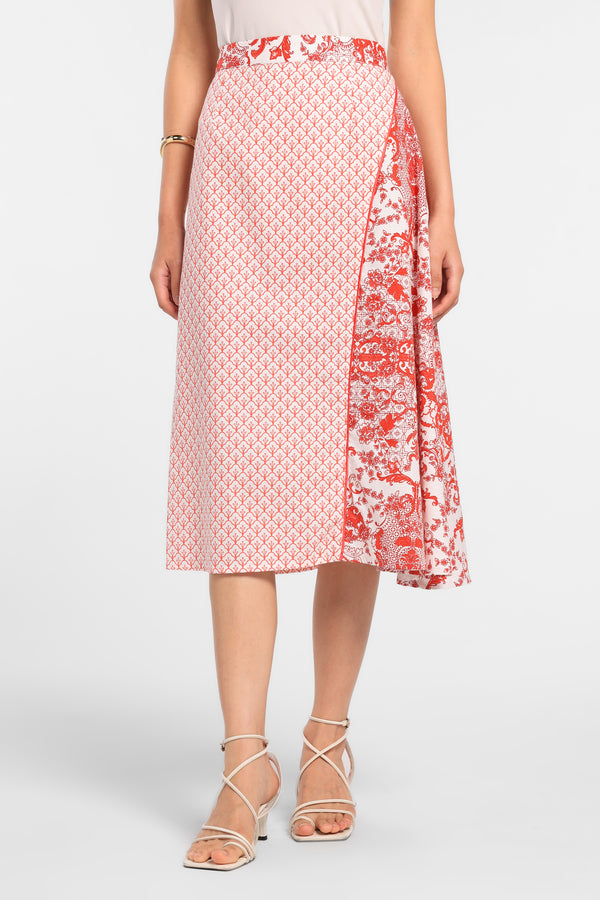 Rok Aline dengan kombinasi cutting flare di bagian samping. Dibuat dari katun dobby yang nyaman dipakai dan motif special CNY motif guci china kombinasi motif bunga kecil dengan nuansa warna merah cerah dan kombinasi bisban merah yang cantik. Dapat dipakai untuk acara formal.