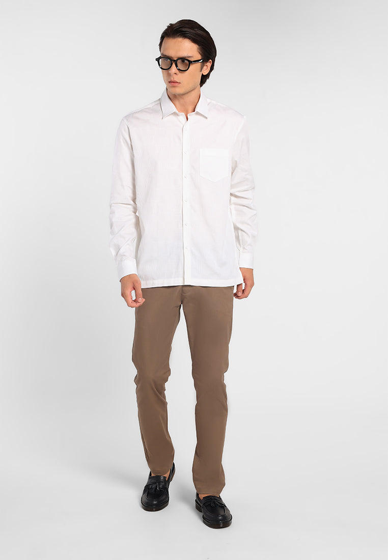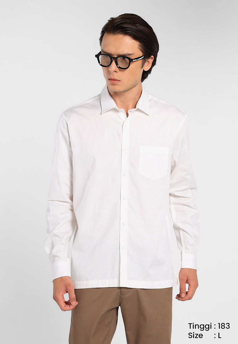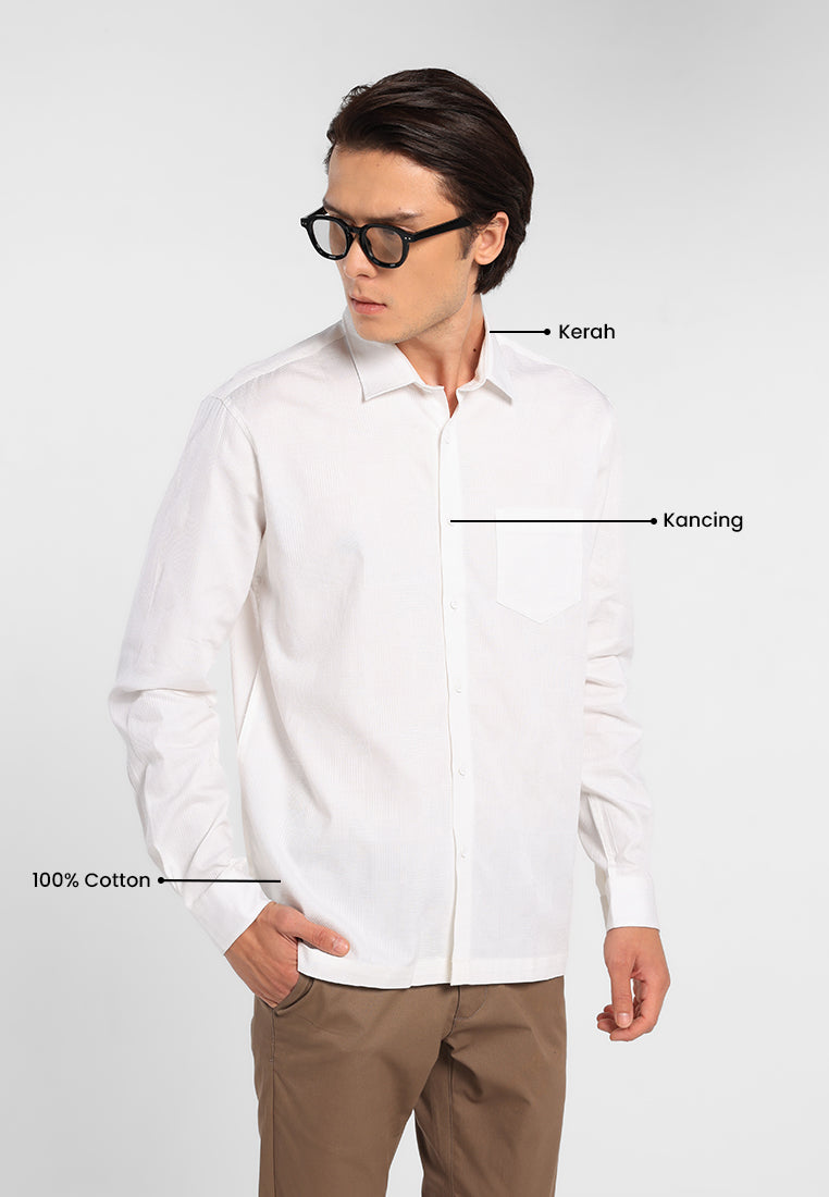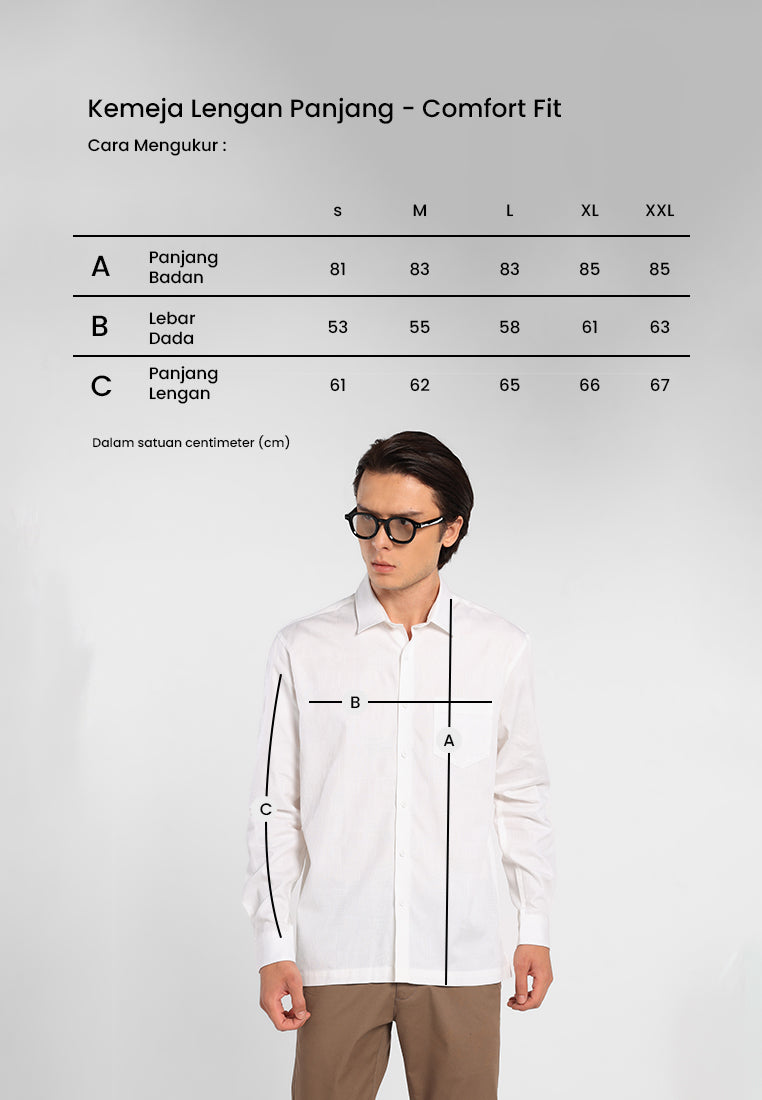 Kemeja lengan panjang ini terbuat dari bahan dobby tekstur 100% cotton yang memberikan kenyamanan maksimal sepanjang hari. Dirancang agar mudah dipadukan dengan berbagai bawahan, kemeja ini dilengkapi fitting comfort fit serta bawah rata yang mendukung tampilan kasual yang rapi dan terorganisir.