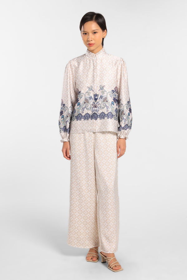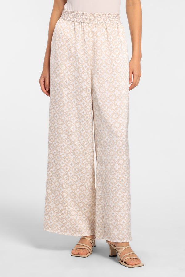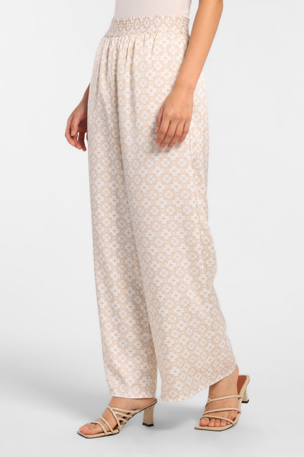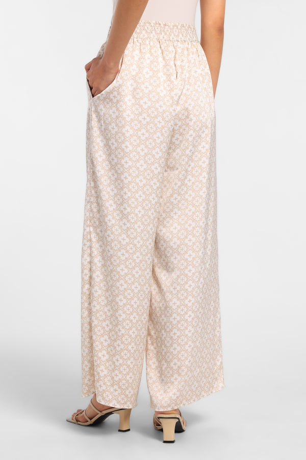 Celana Panjang Printed dengan motif Eksklusif dirancang dalam komposisi warna Off White lembut.