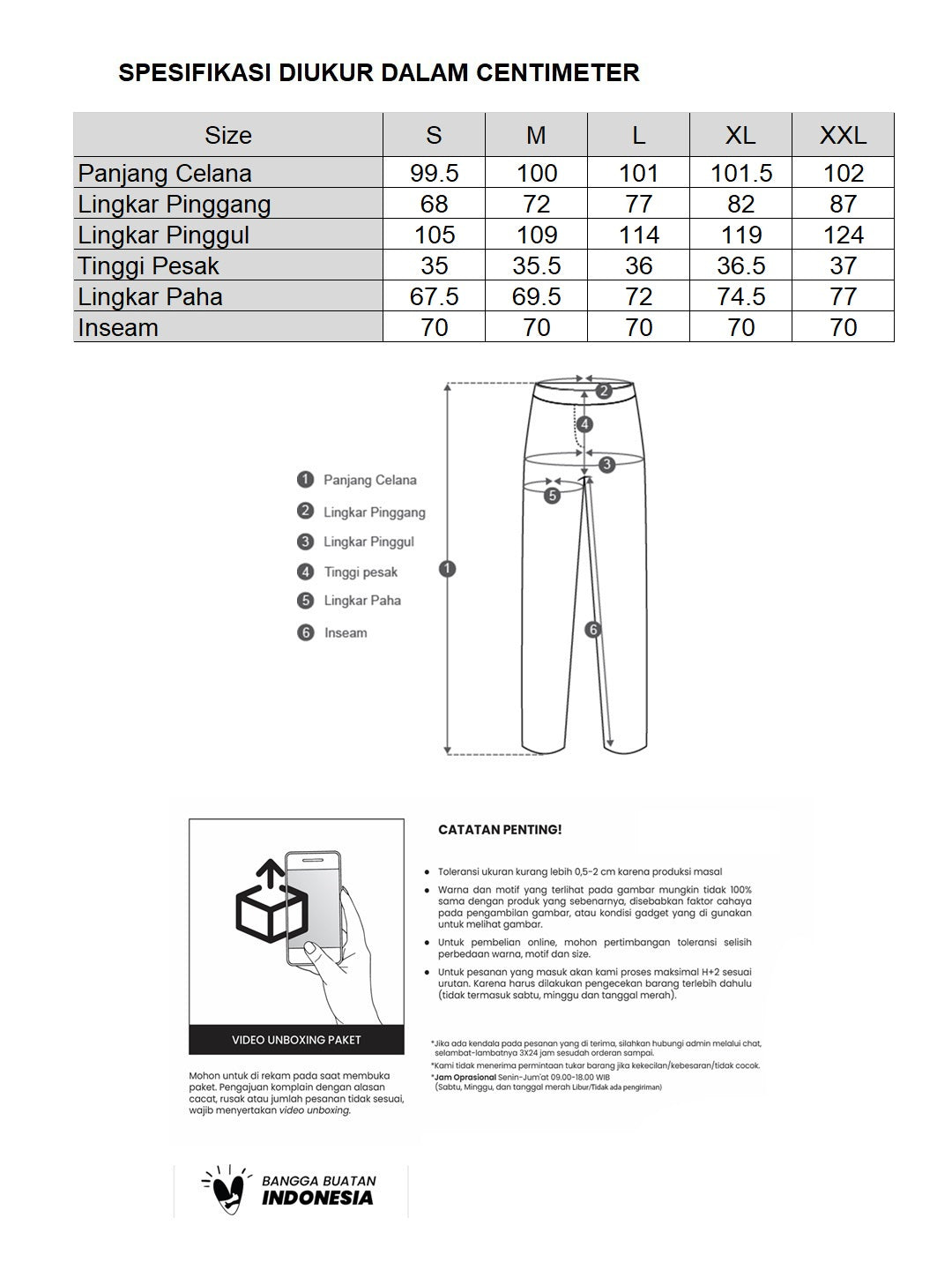 * Size chart dapat dilihat di bagian belakang foto produk *