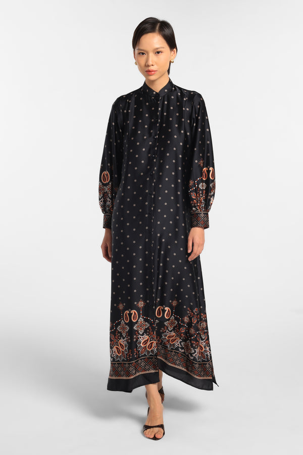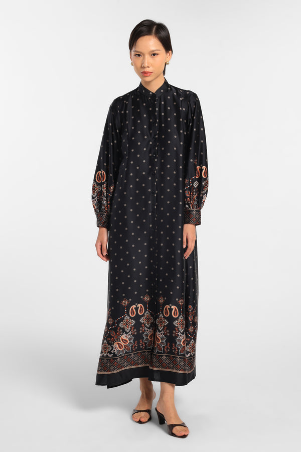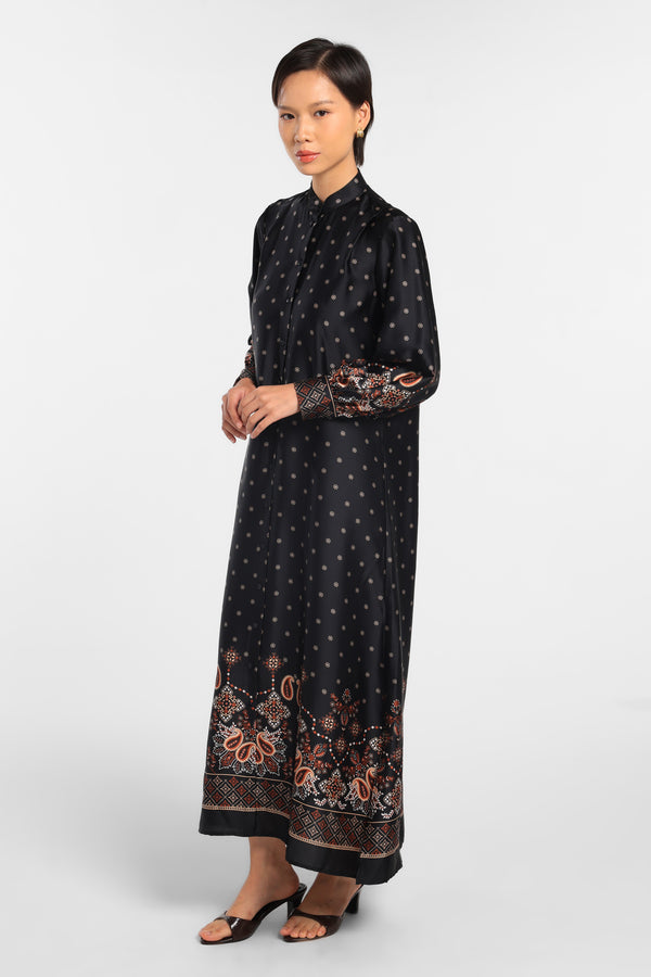 MINIMAL - Mahnoor - Gamis Motif Paisley - Black - Rezky Aditya & Citra Kirana for Manzone & Minimal