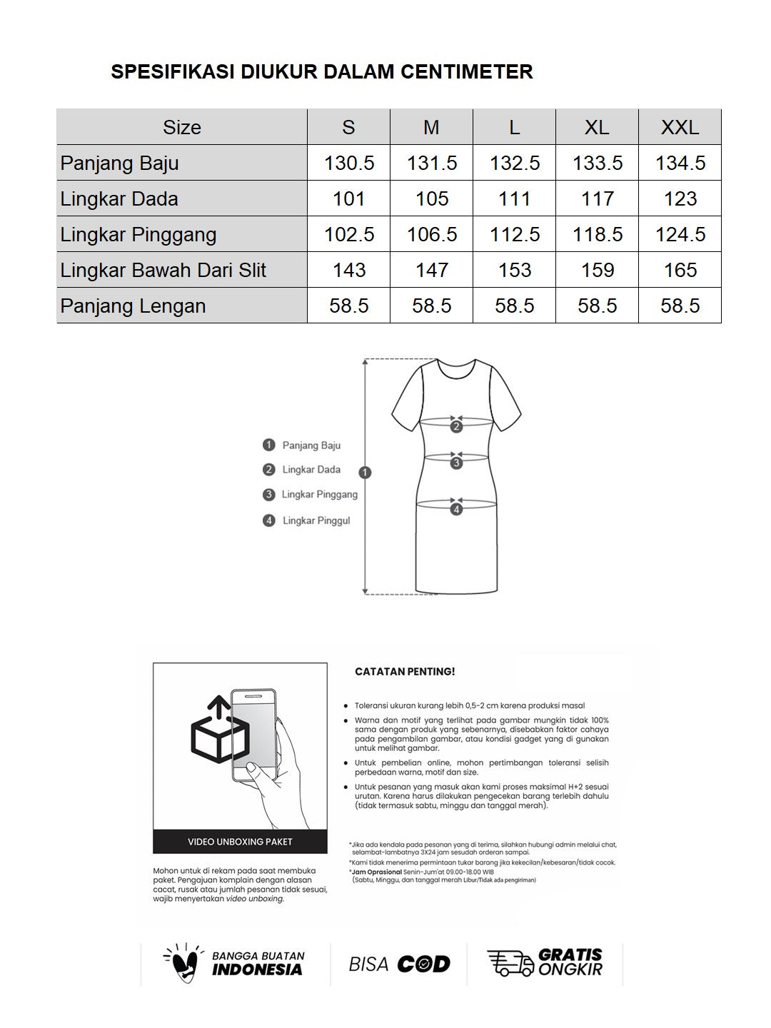 - Maaf, kami tidak menerima tukar size/barang karena kekecilan/kebesaran/tidak cocok.