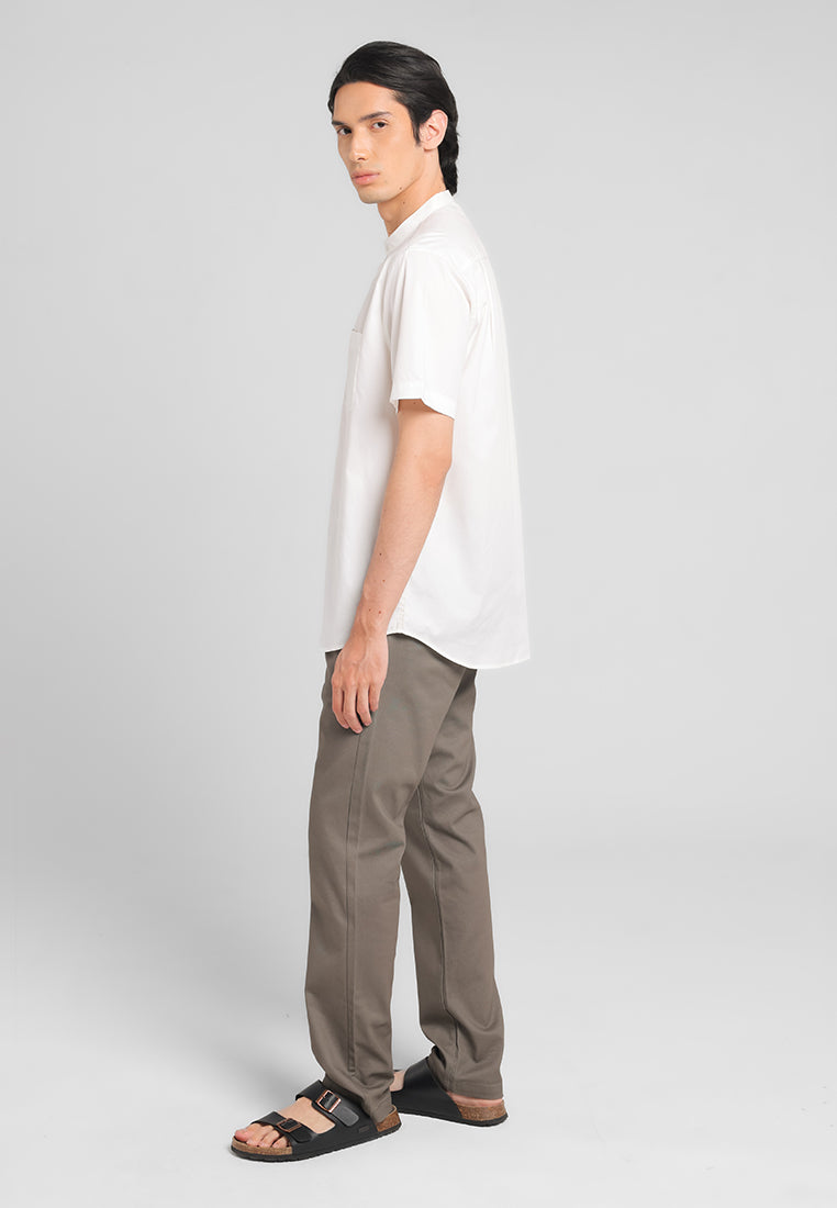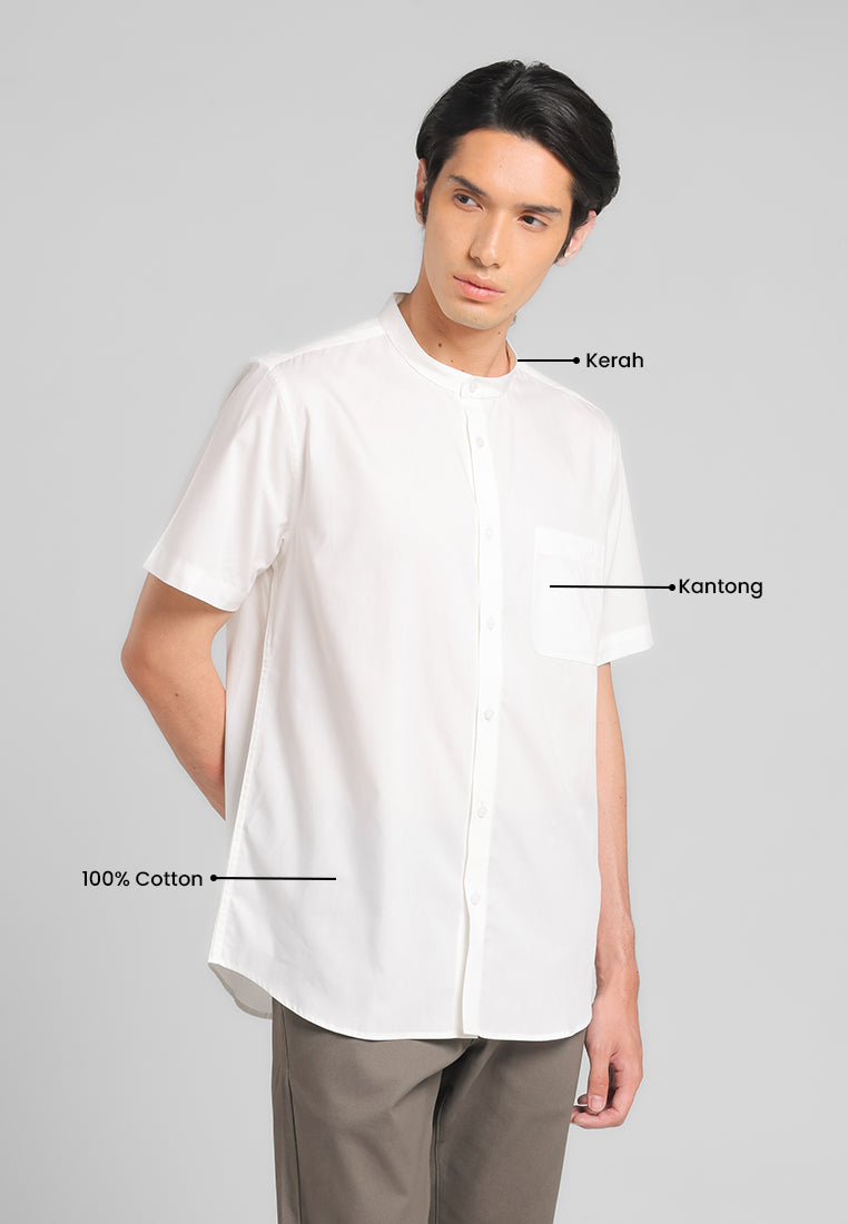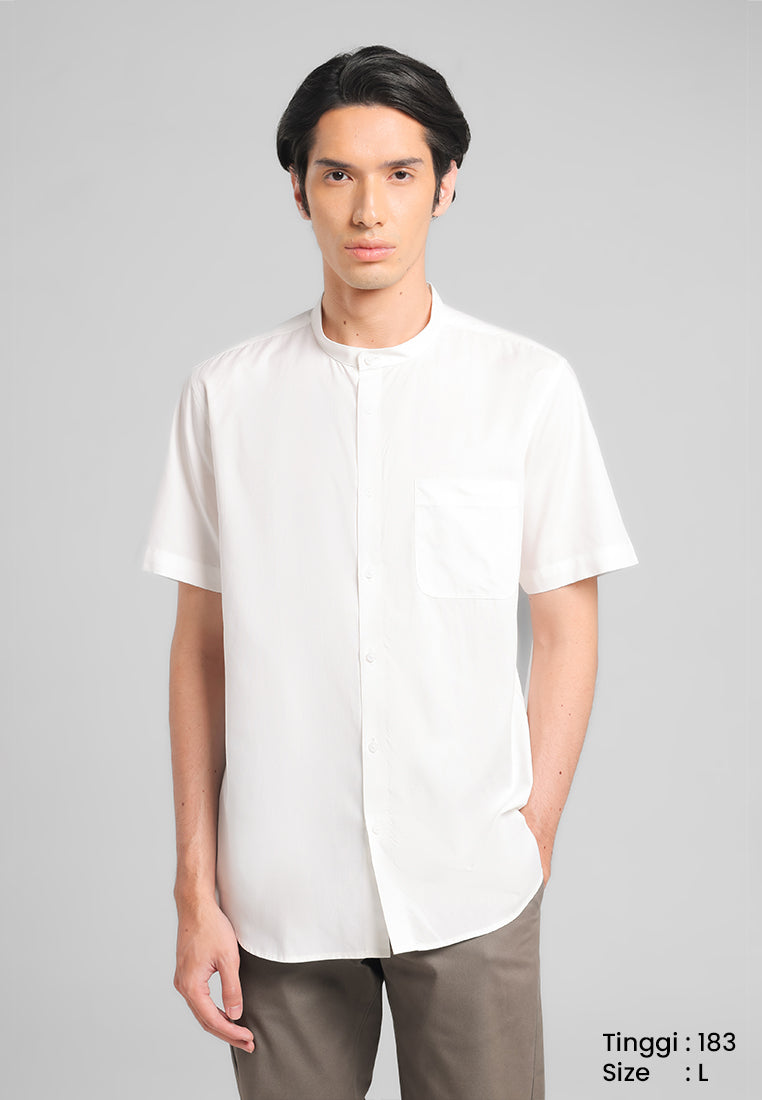 MANZONE - Kemeja Koko Kerah Shanghai Lengan Pendek Pria Maysa Modern Fit - White