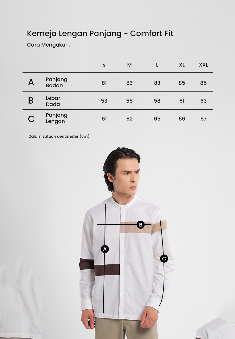 • Kemeja kerah shanghai lengan panjang dengan cutting comfort fit yang nyaman