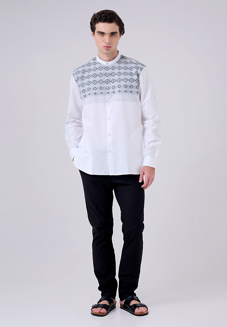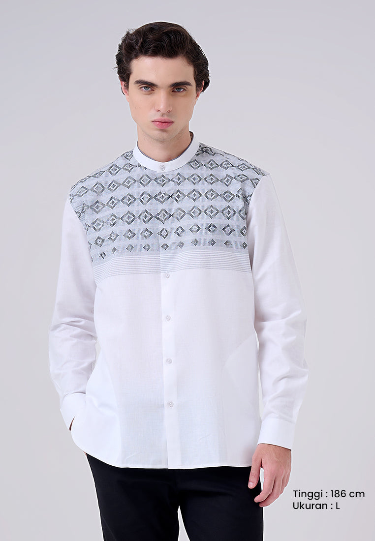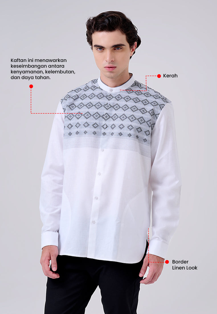Kaftan lengan panjang ini terbuat dari campuran bahan 80% polyester dan 20% cotton, menghasilkan kain yang lembut, ringan, dan tahan lama dengan kemampuan menyerap udara yang baik. Dengan fitting comfort fit, kaftan ini memastikan kenyamanan maksimal sekaligus memberikan tampilan yang rapi dan elegan.