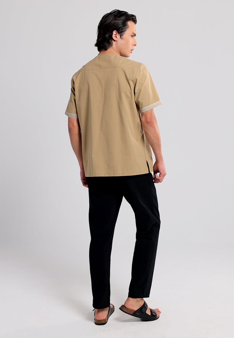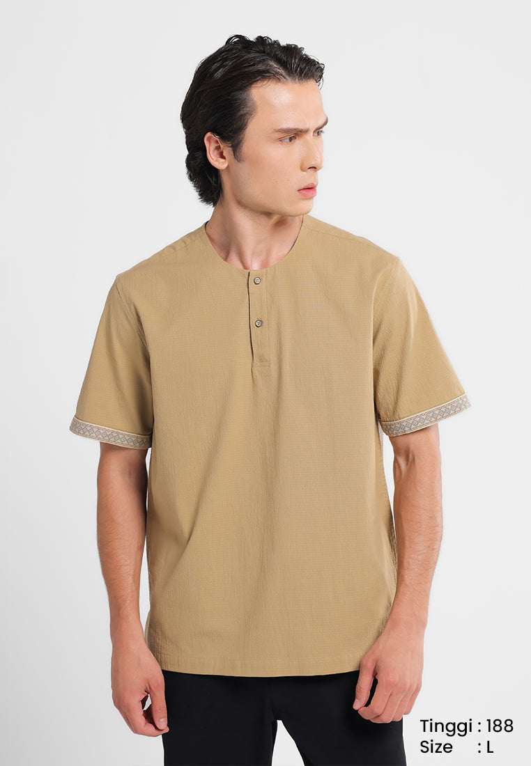MANZONE - Kemeja Koko Lengan Pendek Pria Jannah Comfort Fit - Brown