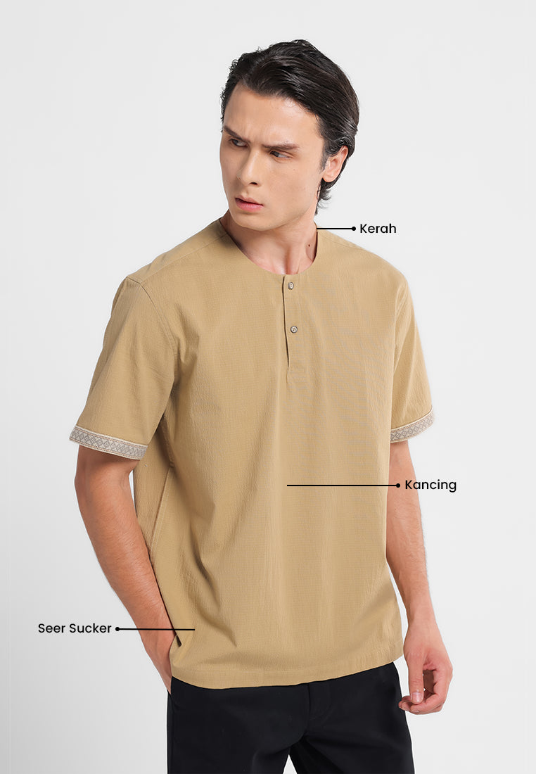 • Menggunakan kain seersucker yang ringan dan bertekstur