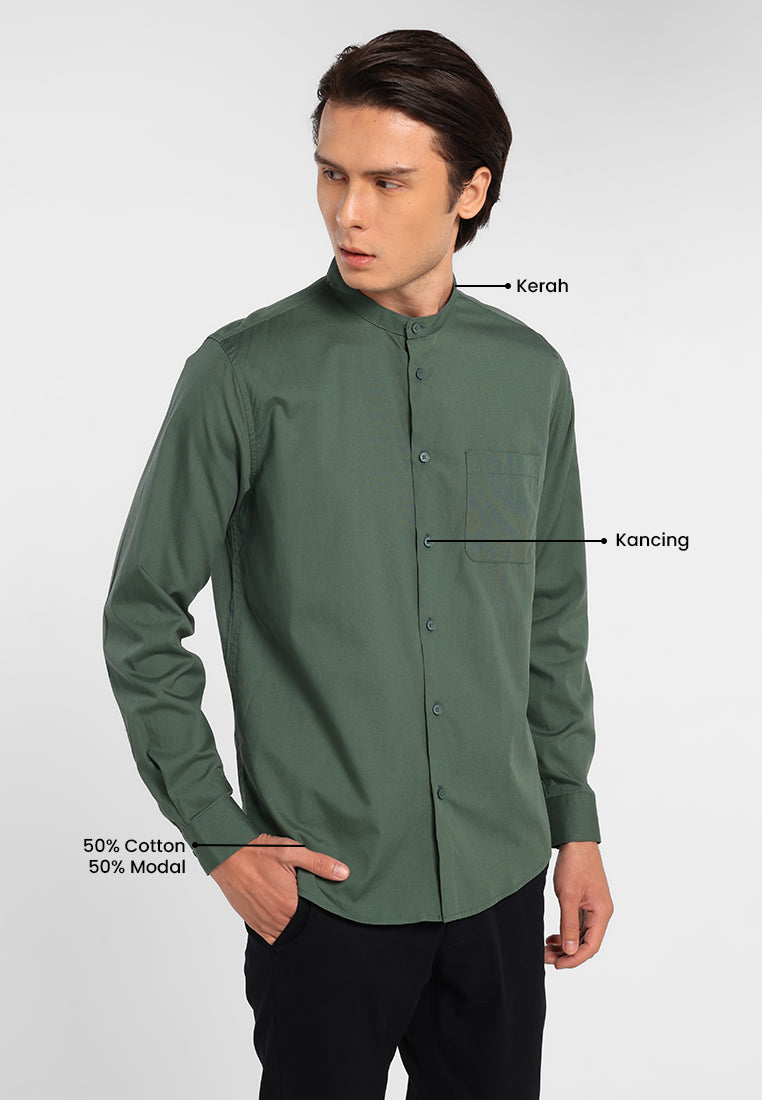 - Kemeja kerah shanghai lengan panjang dengan cutting modern fit yang nyaman