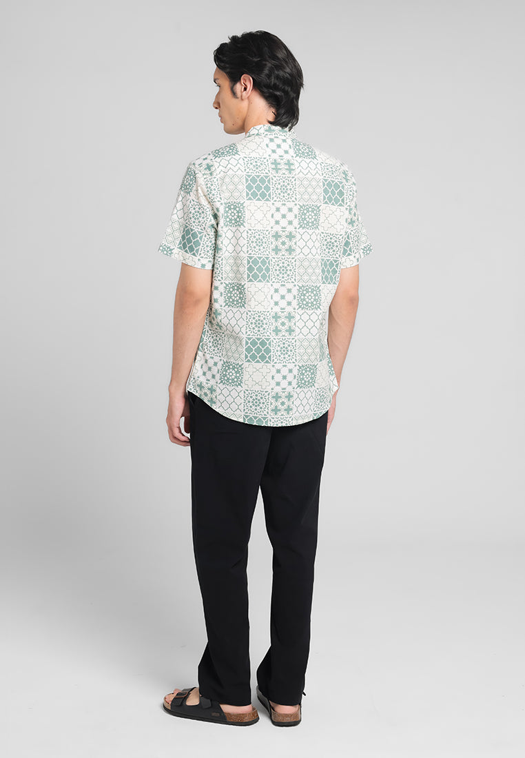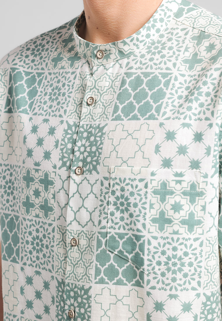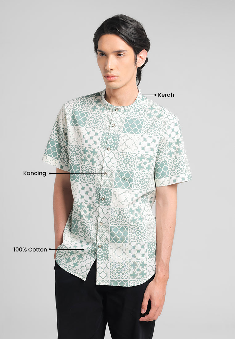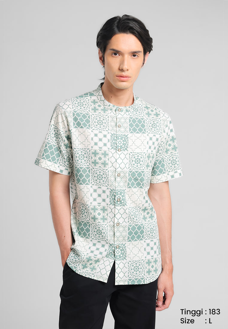 MANZONE - Kemeja Koko Shanghai Lengan Pendek Firyal Slim Fit - Green