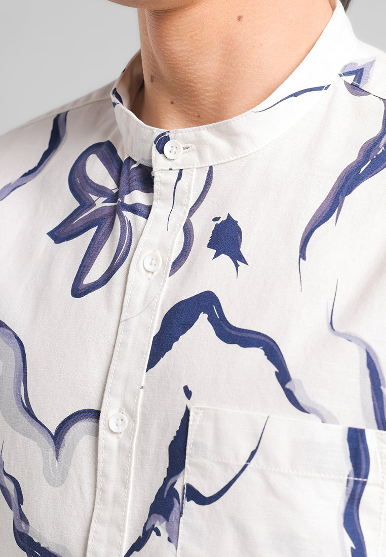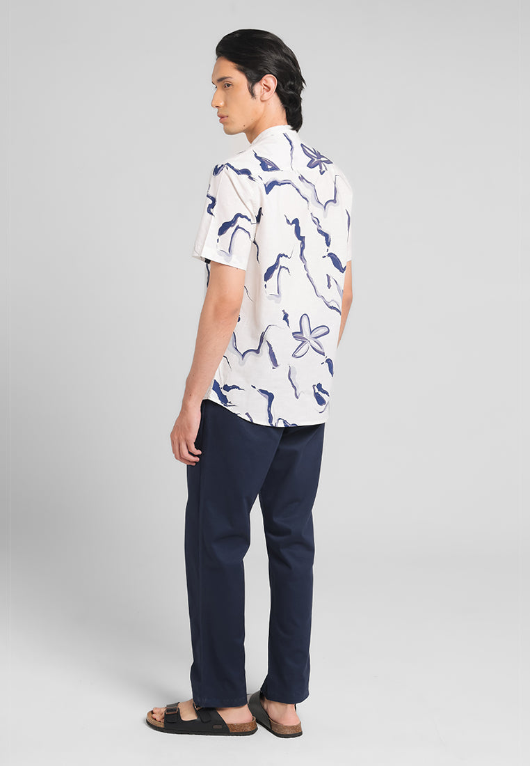 - Print abstract dengan base putih dan print berwarna navy