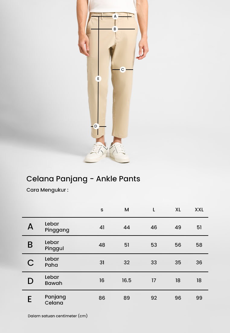 Ankle pants ini menggunakan bahan Dobby Spandex dengan tekstur dobby yang khas, memberikan tampilan lebih premium dan elegan. Kombinasi 78% Cotton, 19% Rayon, dan 3% Spandex membuat celana ini lembut, breathable, dan memiliki kelenturan yang nyaman. Celana ini juga dilengkapi karet pada bagian pinggang, sehingga lebih fleksibel dan mengikuti gerakan tubuh tanpa terasa ketat. Potongan ankle pants memberikan siluet modern yang cocok untuk gaya kasual maupun semi-formal.