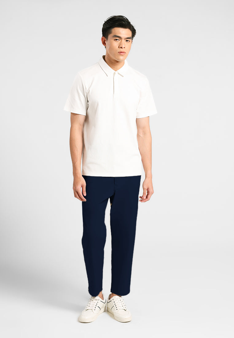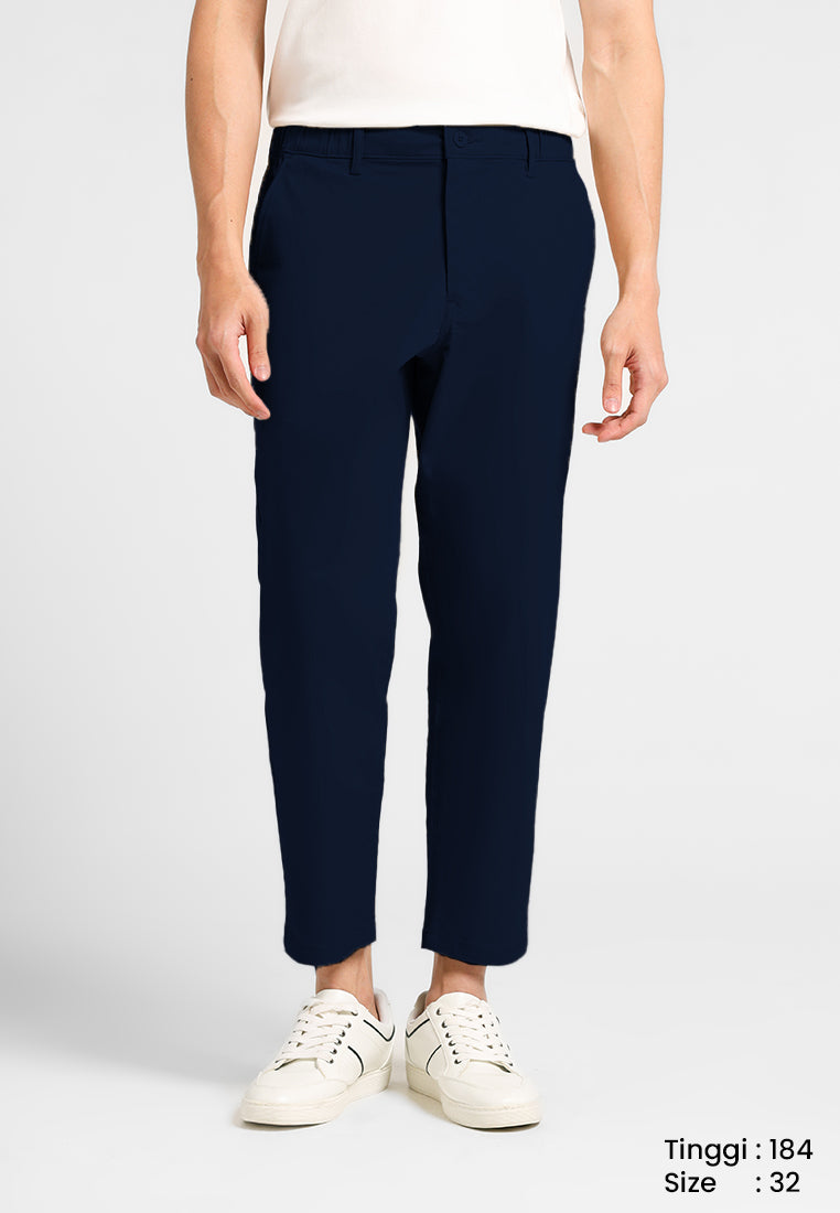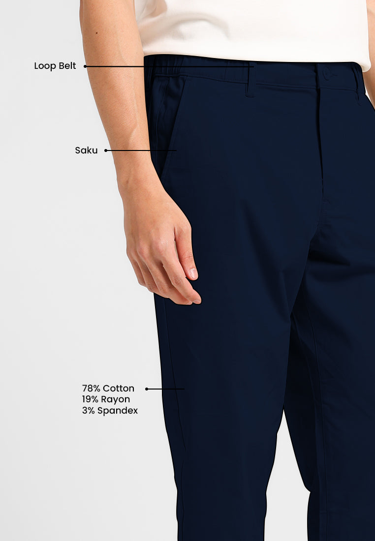 Ankle pants ini menggunakan bahan Dobby Spandex dengan tekstur dobby yang khas, memberikan tampilan lebih premium dan elegan. Kombinasi 78% Cotton, 19% Rayon, dan 3% Spandex membuat celana ini lembut, breathable, dan memiliki kelenturan yang nyaman. Celana ini juga dilengkapi karet pada bagian pinggang, sehingga lebih fleksibel dan mengikuti gerakan tubuh tanpa terasa ketat. Potongan ankle pants memberikan siluet modern yang cocok untuk gaya kasual maupun semi-formal.