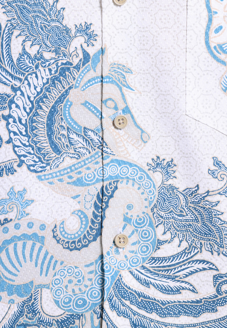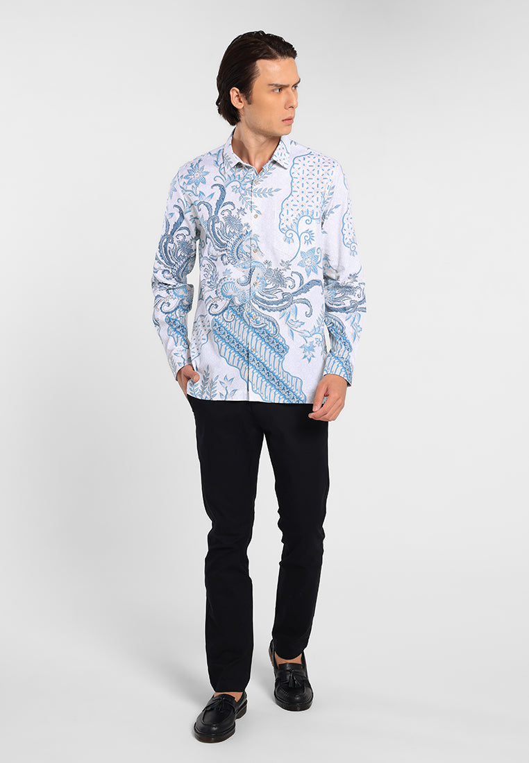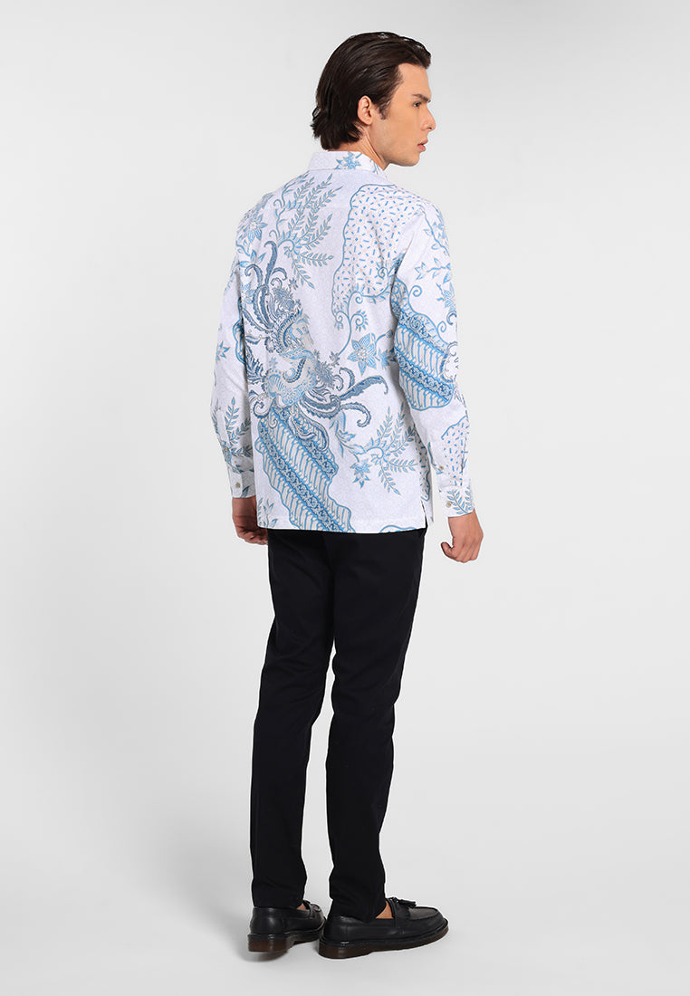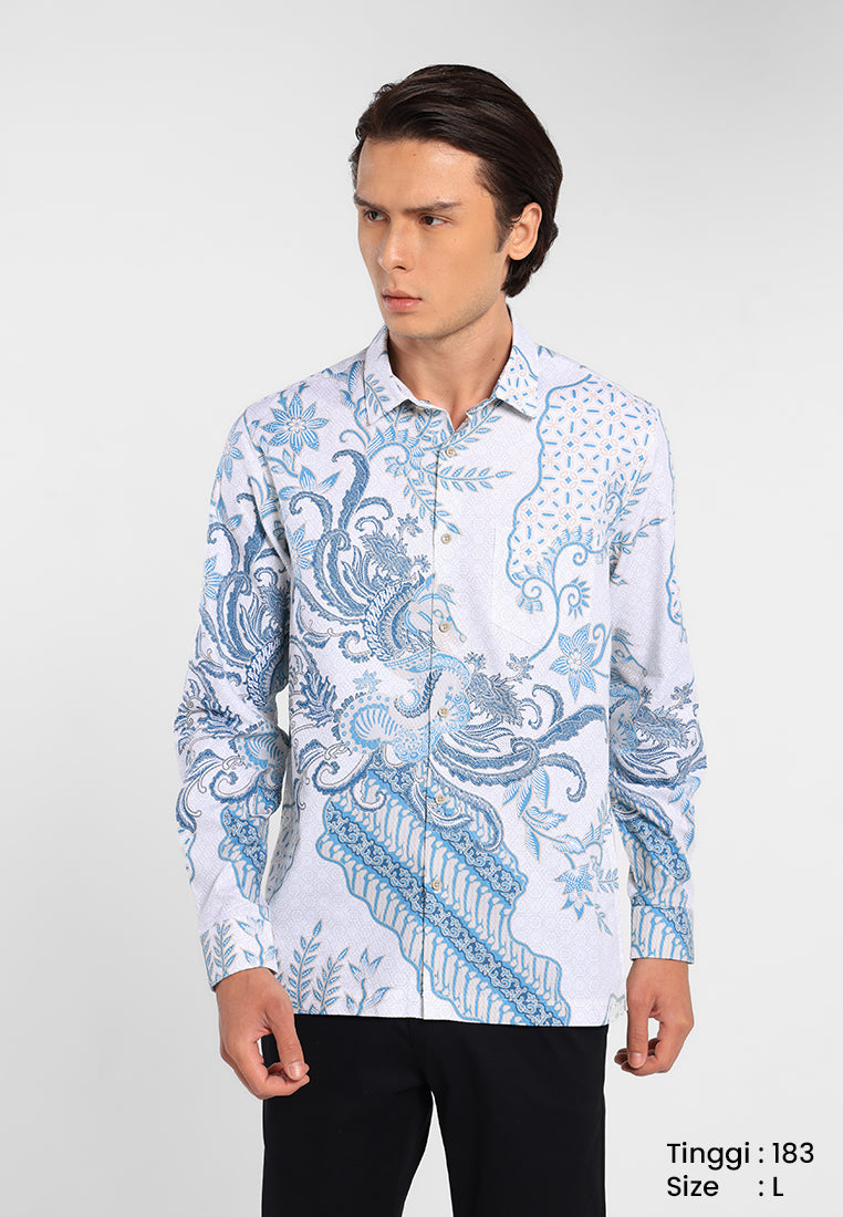 Kemeja batik lengan panjang dengan motif Kuda Lumping yang terinspirasi dari seni tradisi Nusantara, melambangkan keberanian, kekuatan batin, dan semangat juang. Dipadukan dengan warna dasar putih dan toska, kemeja ini menghadirkan kesan bersih, segar, dan modern tanpa meninggalkan nilai budaya, ideal untuk penampilan formal maupun semi-formal yang berkarakter.