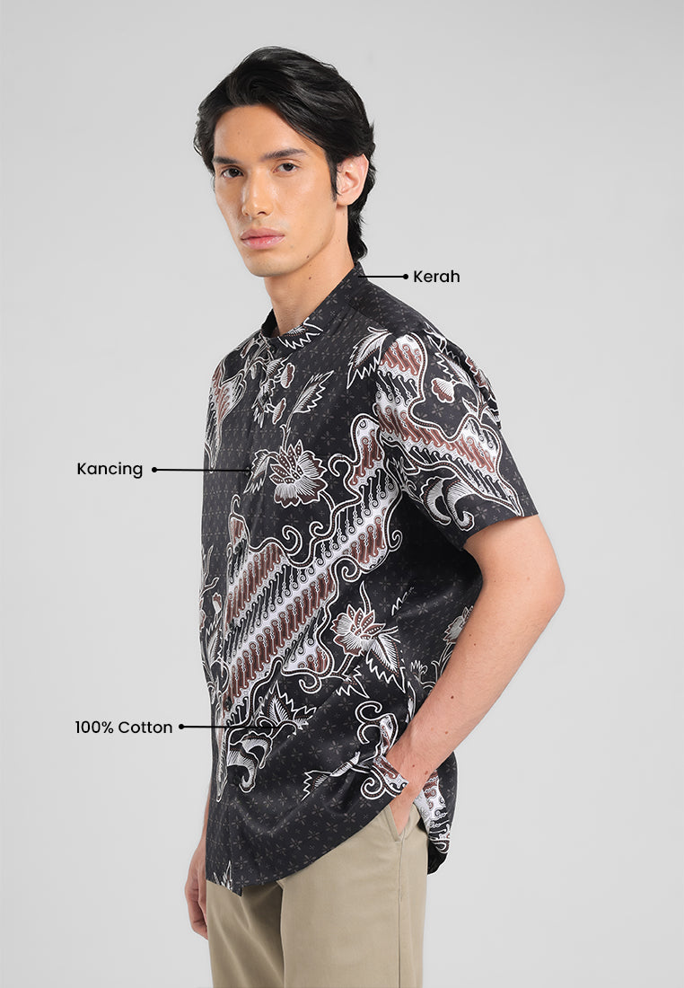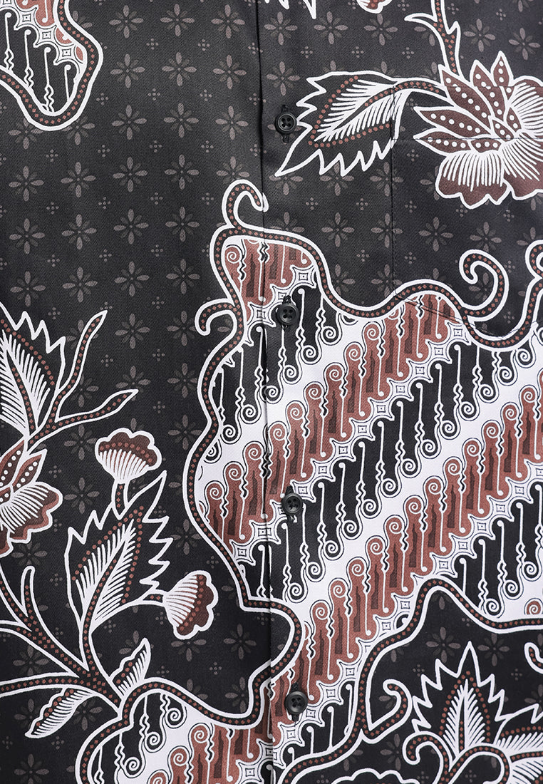 - Print batik parang dikombinasikan menjadi batik kontemporer sehingga batik terlihat modern dengan nuansa warna hitam