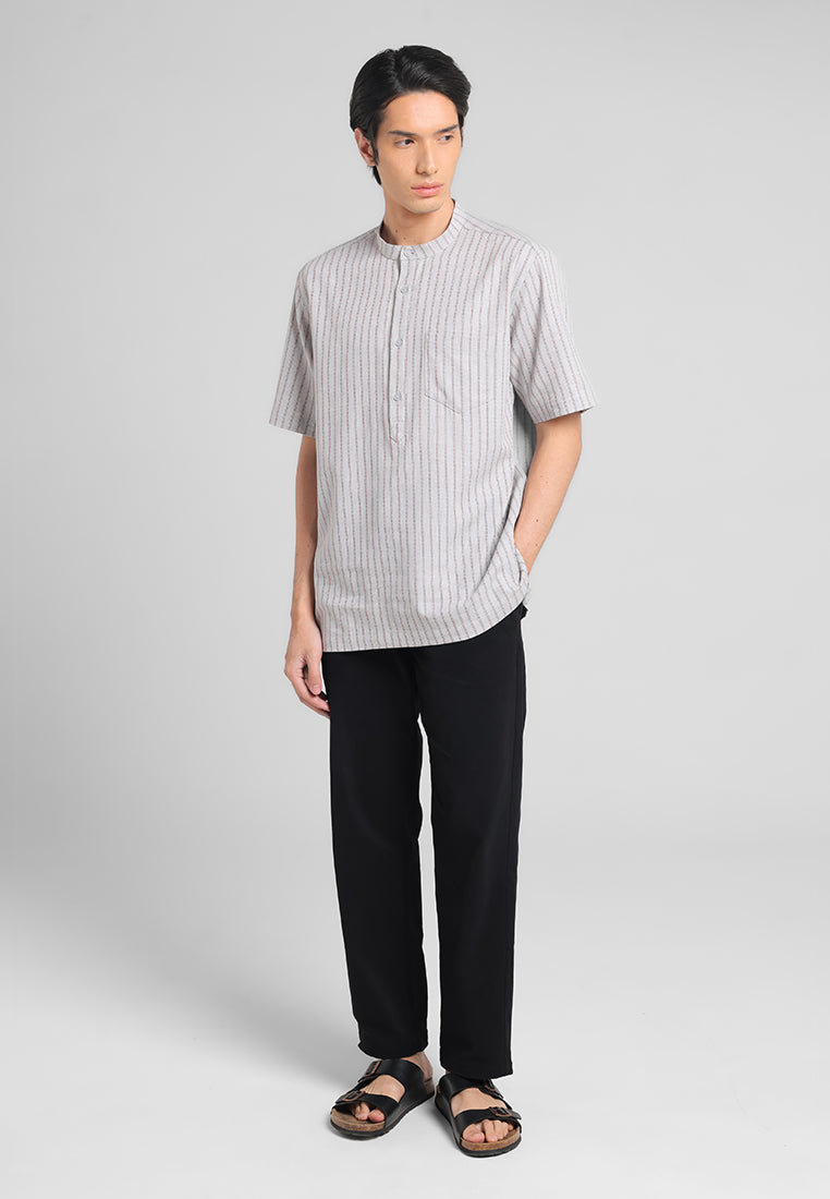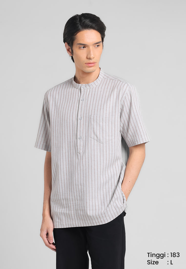MANZONE - Kemeja Koko Shanghai Lengan Pendek Pria Comfort Fit - Sufyan - Grey