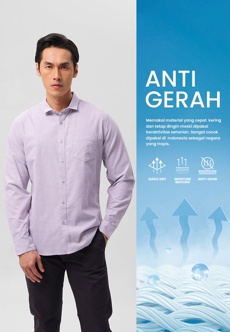 Kemeja lengan panjang ini terbuat dari bahan oxford yang dilengkapi dengan finishing anti odor, moisture management, dan quick dry, yang dikenal sebagai "anti gerah." Desain ini memastikan kenyamanan maksimal dan kesegaran sepanjang hari, menjadikannya pilihan sempurna untuk dipakai sehari-hari. Kemeja ini memiliki kantong di bagian depan kiri yang fungsional dan menambah detail gaya. Dengan fitting-an Slim fit, kemeja ini menawarkan siluet yang pas dan modis. Tersedia dalam beberapa variasi warna, kemeja ini memungkinkan Anda untuk mengekspresikan gaya pribadi Anda dengan tetap terlihat rapi dan stylish.