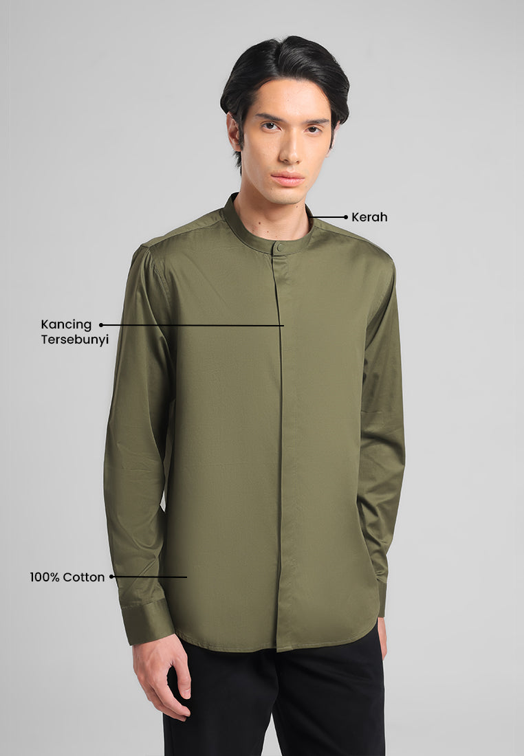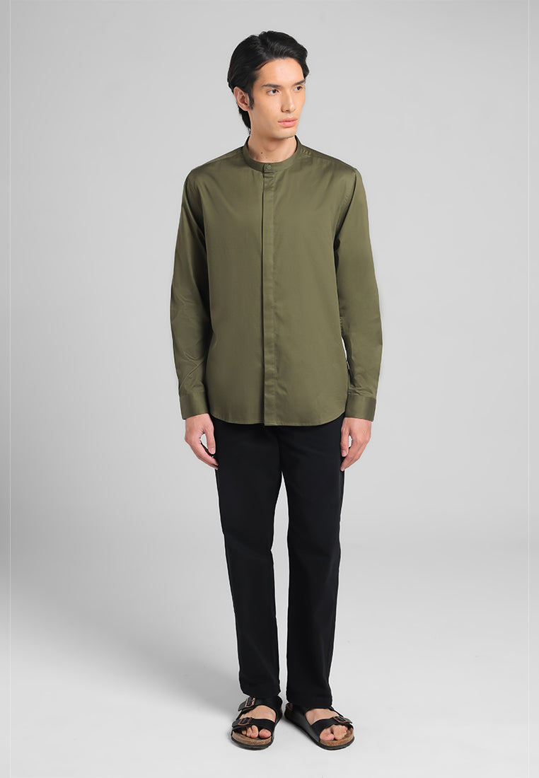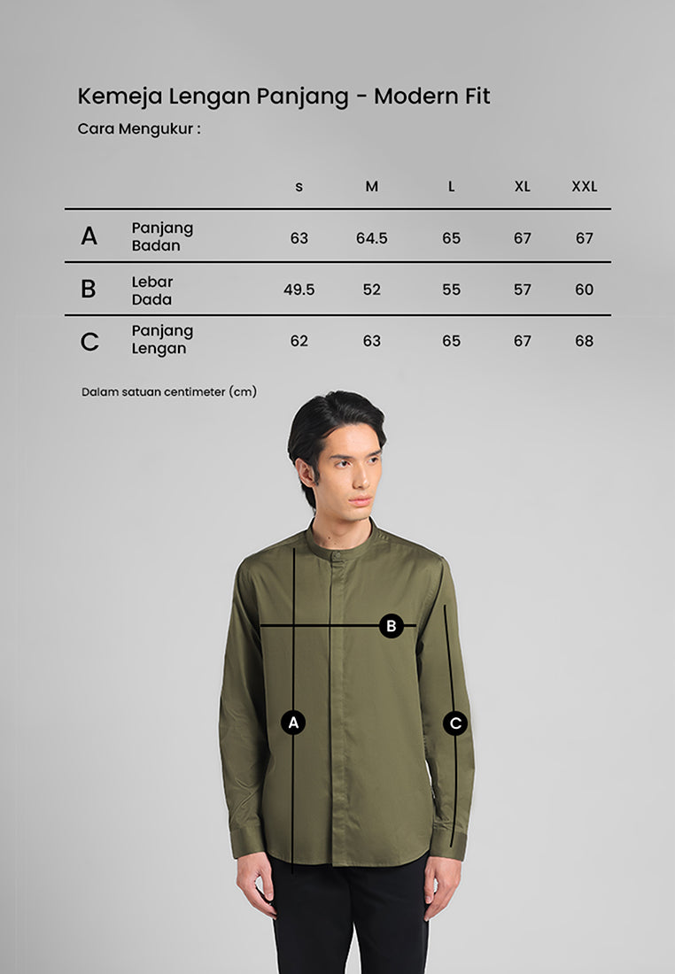 - Kemeja kerah shanghai lengan panjang dengan cutting modern fit yang nyaman