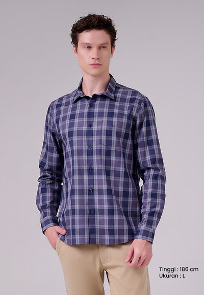 MANZONE - Kemeja Lengan Panjang Pria Harold Modern Fit - Navy
