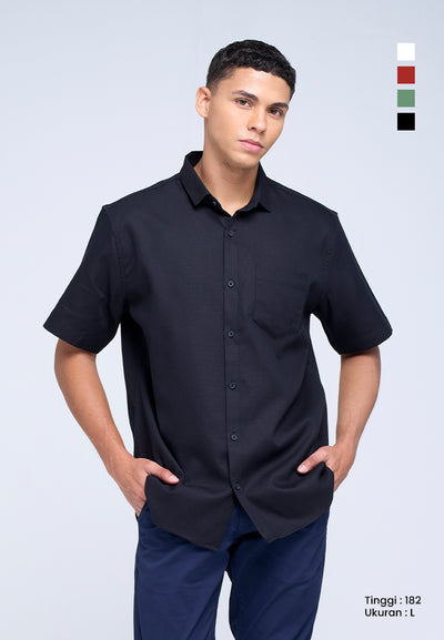 MANZONE - Kemeja Dobby Lengan Pendek Pria Takeshi 1 Comfort Fit - Black