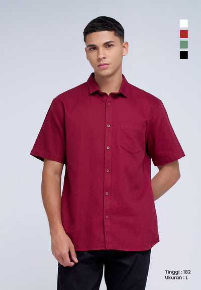 MANZONE - Kemeja Dobby Lengan Pendek Pria Takeshi 2 Comfort Fit - Maroon