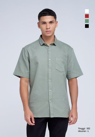 MANZONE - Kemeja Dobby Lengan Pendek Pria Takeshi 3 Comfort Fit - Green