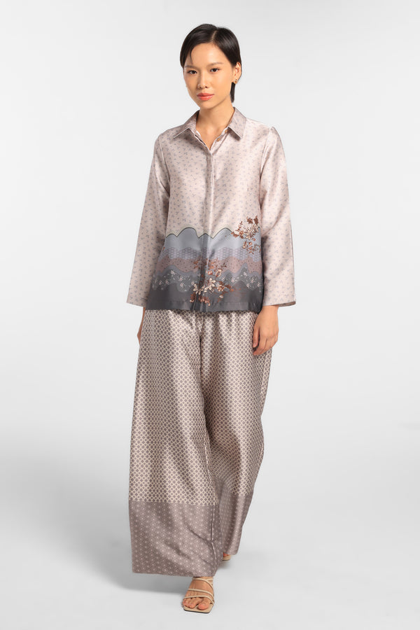 Potongan clean dan siluet minimal menjaga motif tetap terlihat refined.