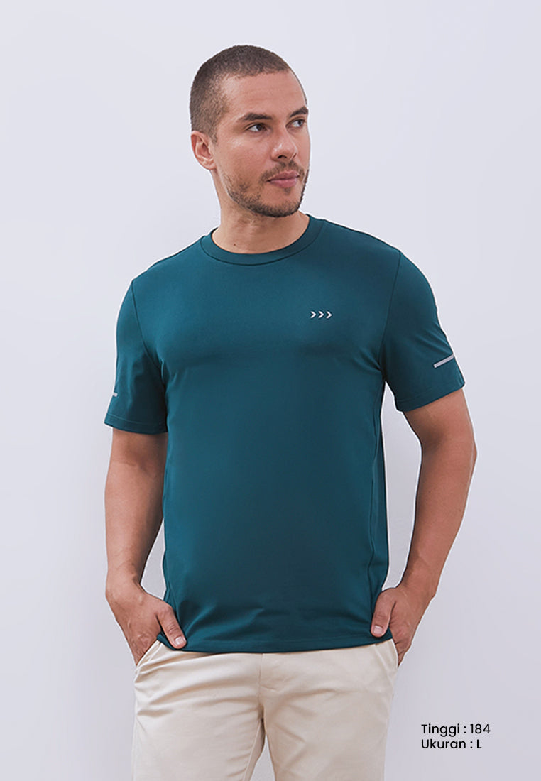 T-shirt active ini terbuat dari bahan single jersey dengan komposisi 87% polyester dan 13% spandex, memberikan kenyamanan maksimal dengan daya regang yang fleksibel. Materialnya ringan, cepat menyerap keringat, dan breathable, cocok untuk aktivitas fisik yang intens. Detail sablon reflective pada bagian tangan kiri dan kanan serta logo reflective active di bagian tengah menambah aksen sporty sekaligus meningkatkan visibilitas saat digunakan di kondisi minim cahaya.