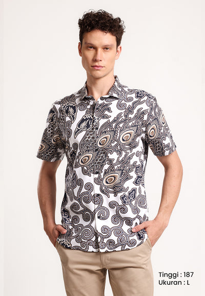 MANZONE - Kemeja Batik Lengan Pendek Pria Parama Slim Fit - White