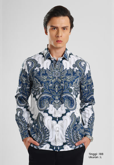 MANZONE - Kemeja Batik Lengan Panjang Pria Benawa Modern Fit - Navy