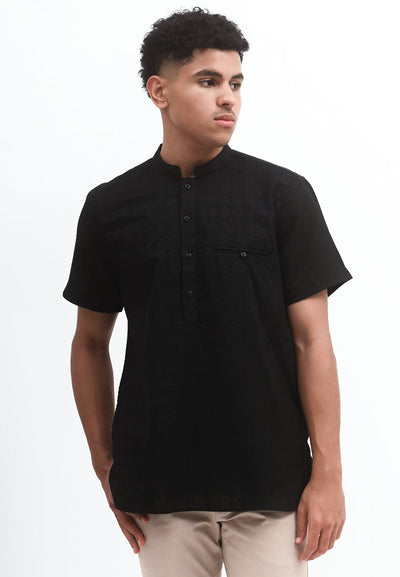 MANZONE Kemeja Koko Lengan Pendek Pria KHALEED - BLACK