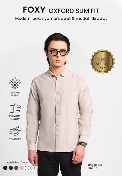 Manzone Kemeja Lengan Panjang Pria Slim Fit Foxy - Beige