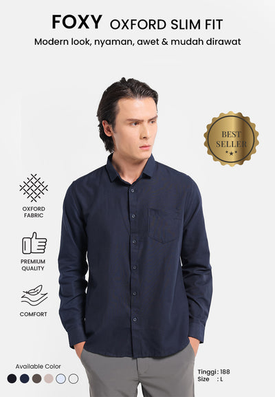 Manzone Kemeja Lengan Panjang Pria Slim Fit Foxy - Navy