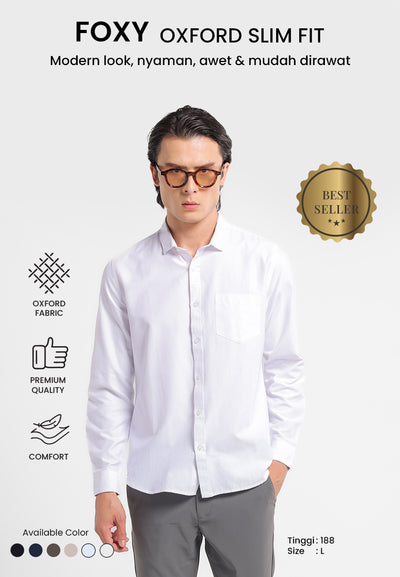 Manzone Kemeja Lengan Panjang Pria Slim Fit Foxy - White