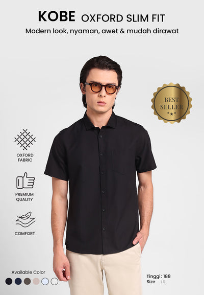 Manzone Kemeja Lengan Pendek Pria Slim Fit Kobe - Black