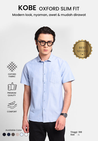 Manzone Kemeja Lengan Pendek Pria Slim Fit Kobe - Light Blue