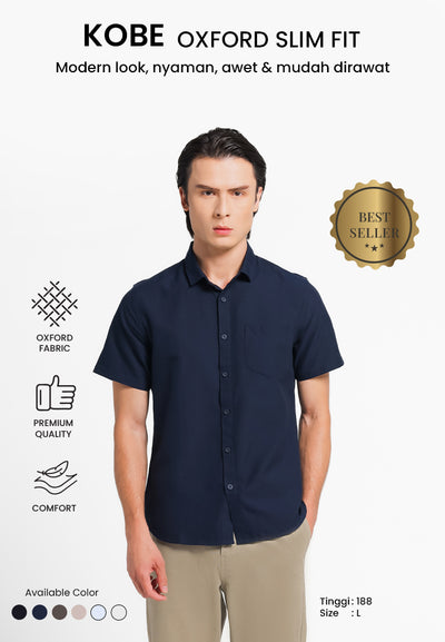 Manzone Kemeja Lengan Pendek Pria Slim Fit Kobe - Navy