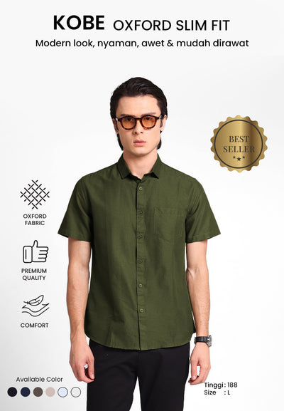 Manzone Kemeja Lengan Pendek Pria Slim Fit Kobe - Olive