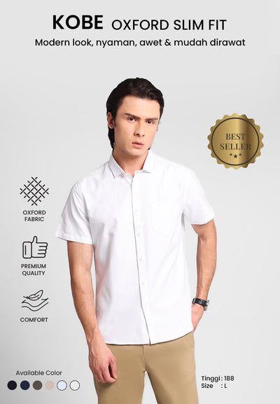 Manzone Kemeja Lengan Pendek Pria Slim Fit Kobe - White