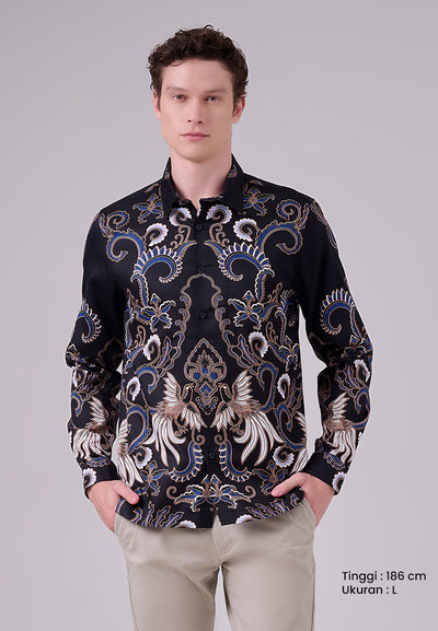 MANZONE - Kemeja Batik Lengan Panjang Pria Bagra Modern Fit - Black