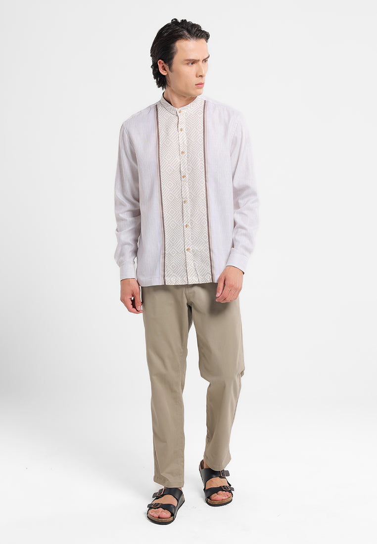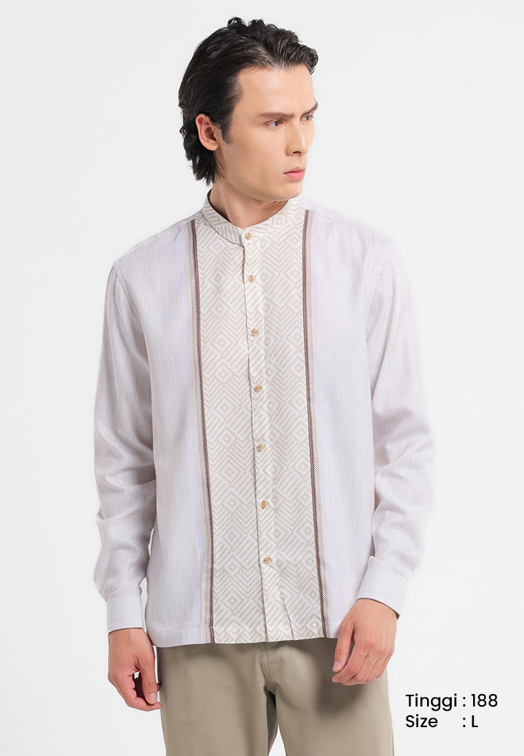 Deskripsi : Kemeja Koko Lengan Panjang - Linen Look (Border)